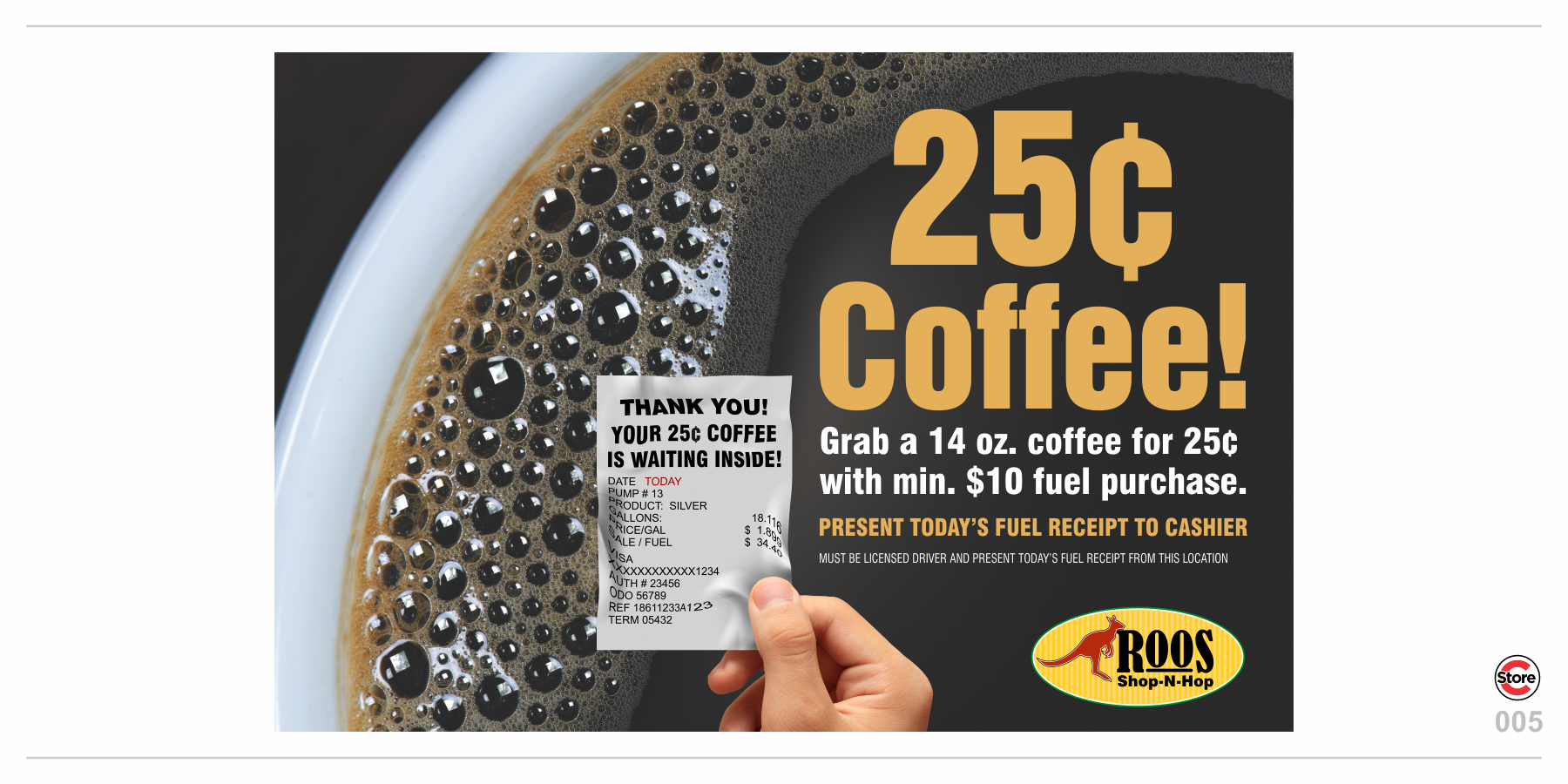Convenience Store, Gas Station, Fuel Pump, Gas Pump, Convenience Store Incentives, Convenience Store Marketing, Pump Topper, Window Sign, Point of Sale, Interior SIgn, Door Sign, Door Cling, Coffee, Membership, Restaurant, Coffee Shop, Coffee Marketing